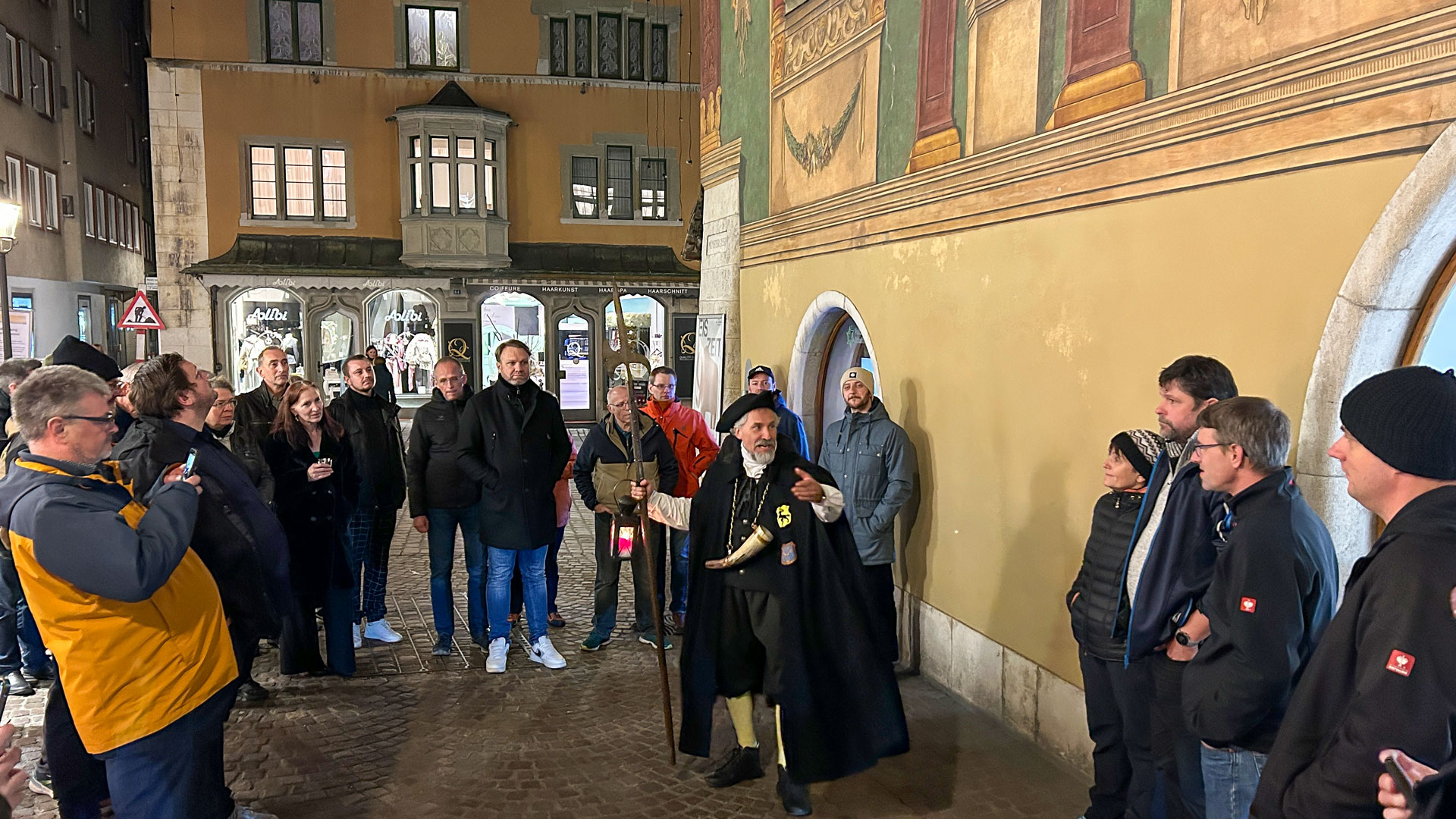 In diesem Fall war es nicht möglich, klar zwischen Arbeit und Vergnügen zu trennen – scheint es doch vielen Teilnehmenden sehr viel Freude zu bereiten, sich mit den Feinheiten betrieblicher Daten zu beschäftigen. Darauf deuten zumindest die intensiven Diskussionen und das Fachsimpeln hin, die sich bei vielen Gelegenheiten ergaben – beispielsweise beim gemeinsamen Essen mittags und abends sowie im Rahmen gemeinsamer Erlebnisse, etwa einer Nachtwächterführung in Schaffhausen.